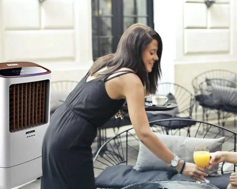 Gracias a su diseño innovador y elegante el Climatizador Evaporativo Ecológico Portátil ECOOL 5P es ideal para refrescar terrazas, patios, jardines en bares y restaurantes.