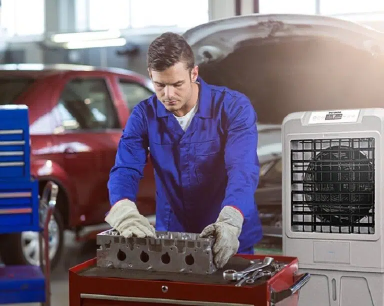Nuestros equipos están especialmente recomendados para su utilización en Talleres Mecánicos, donde es impracticable la instalación de aire acondicionado tradicional, ya que disponen de una gran entrada siempre abierta a la calle.